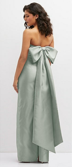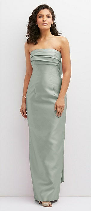Strapless Draped Bodice Column Dress with Oversized Bow in willow green