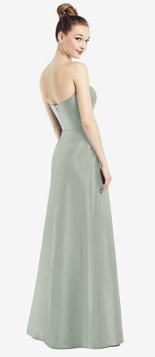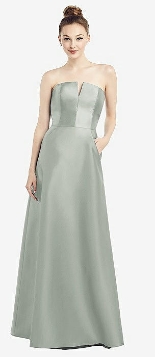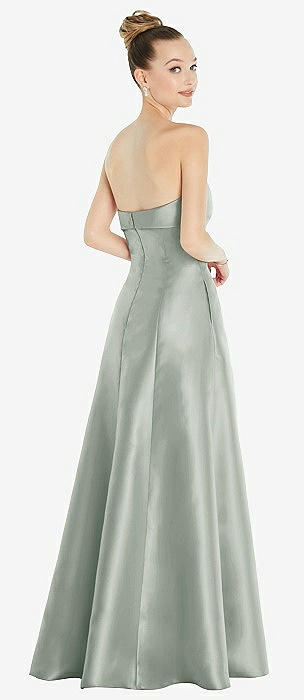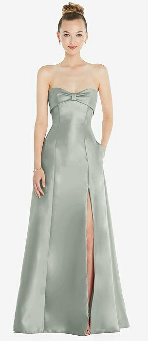 Bow Cuff Strapless Satin Ball Gown with Pockets in willow green