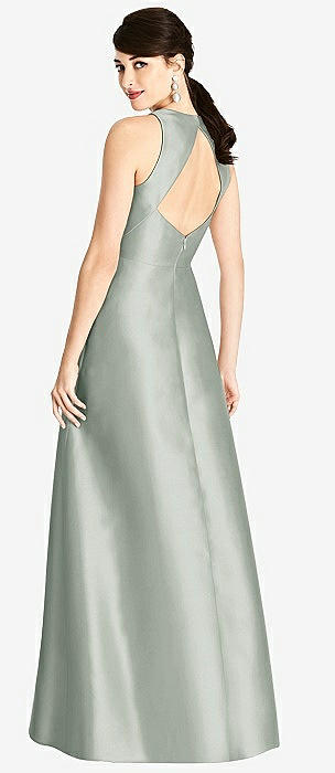 Sleeveless Open-Back Satin A-Line Dress in willow green