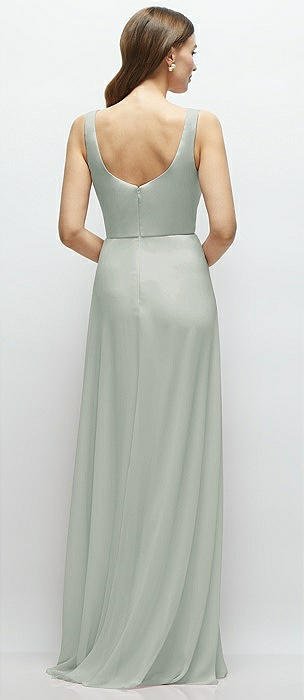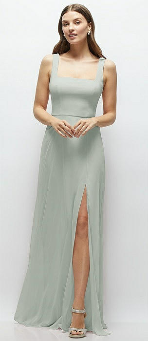 Square Neck Chiffon Maxi Dress with Circle Skirt in willow green