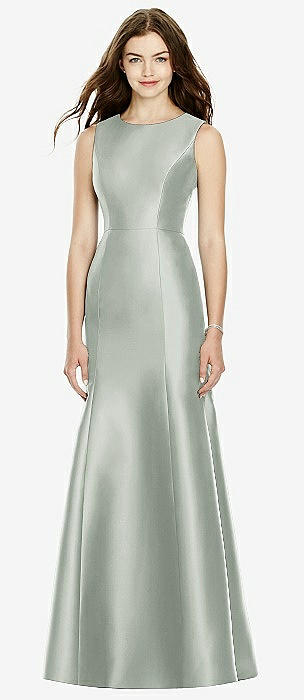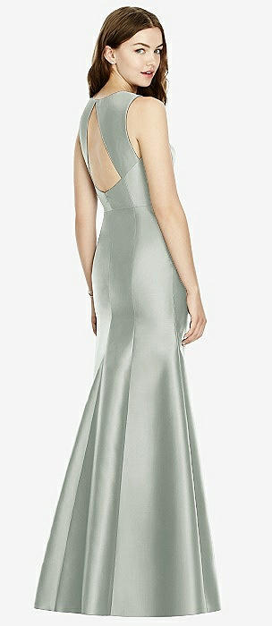 Sleeveless Satin Trumpet Gown with Bow at Open-Back in willow green