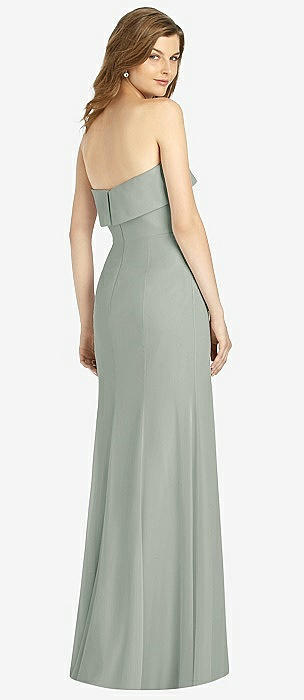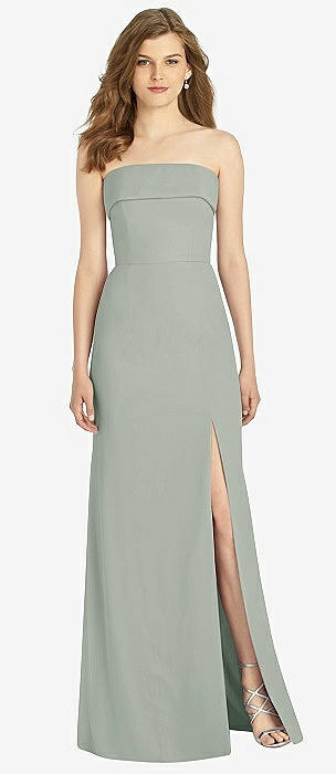 Strapless Pleated Faux Wrap Trumpet Gown with Front Slit in willow green