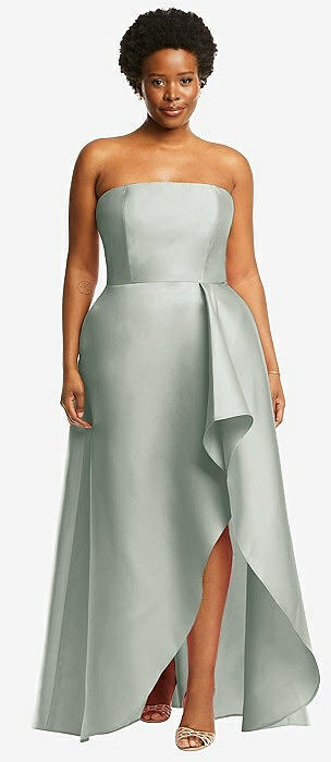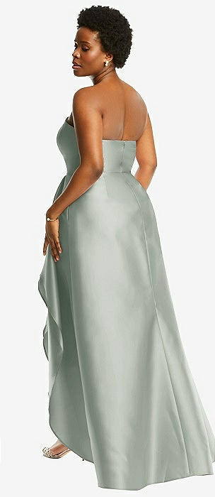 Strapless Satin High Low Dress with Pockets in willow green