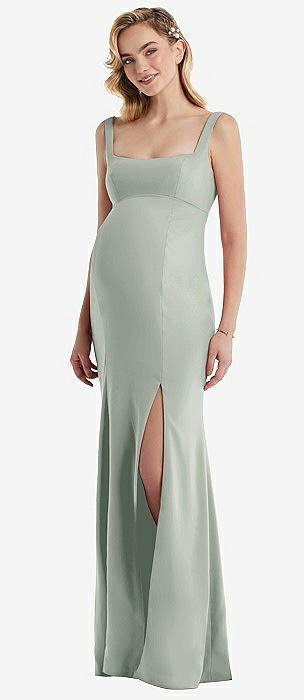 Cowl-Neck Tie-Strap Maternity Slip Dress in willow green