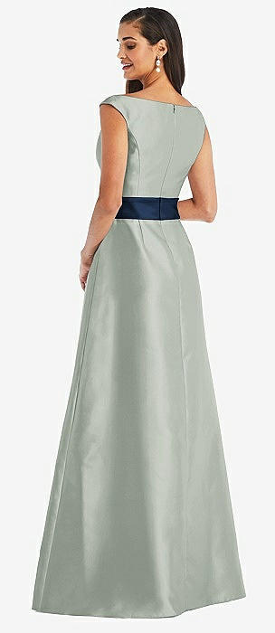 Off-the-Shoulder Bow-Back Satin Trumpet Gown in willow green