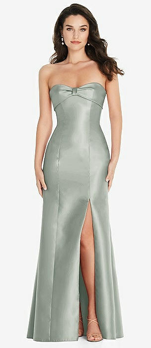 Bow Cuff Strapless Princess Waist Trumpet Gown in willow green