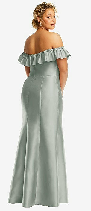 Off-the-Shoulder Ruffle Neck Satin Trumpet Gown in willow green