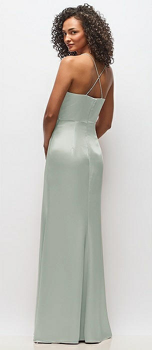 Diamond Halter Bias Maxi Slip Dress with Convertible Straps in willow green