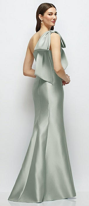Bow One-Shoulder Satin Trumpet Gown in willow green