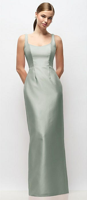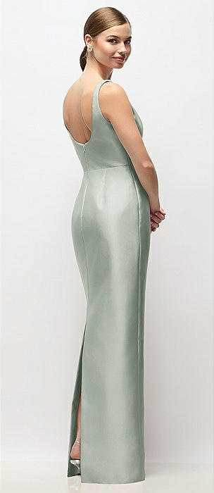 Square-Neck Satin A-line Maxi Dress with Front Slit in willow green