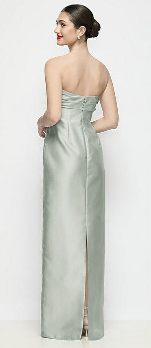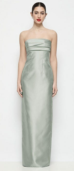 Strapless Pleated Empire Satin Column Maxi Dress in willow green