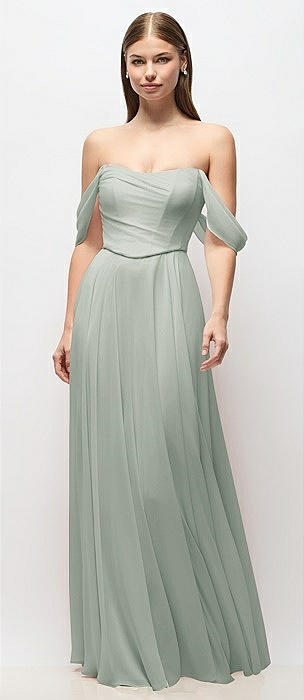 Off-the-Shoulder Basque Corset Chiffon Maxi Dress in willow green