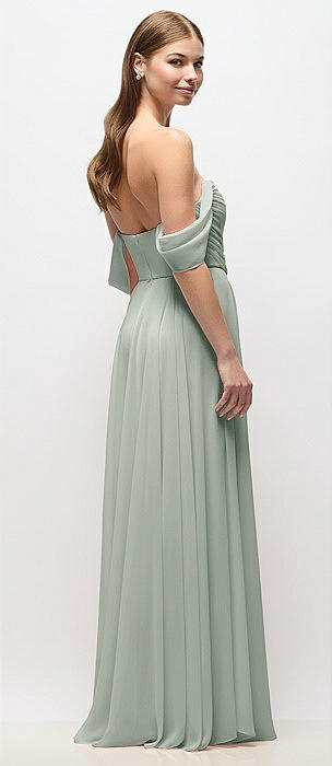 Chiffon Corset Maxi Dress with Removable Off-the-Shoulder Swags in willow green