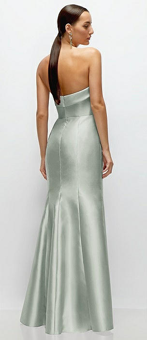 Strapless Cuff Neckline Satin Trumpet Gown in willow green