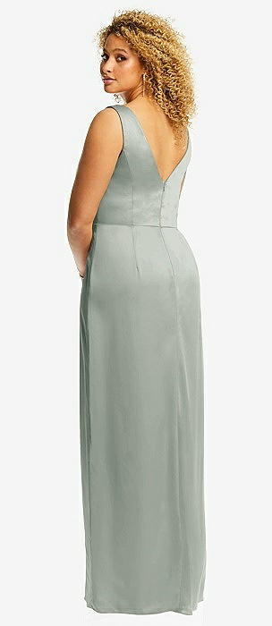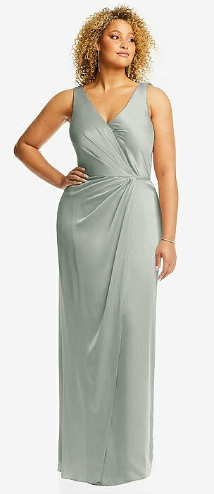 Faux Wrap Whisper Satin Maxi Dress with Draped Tulip Skirt