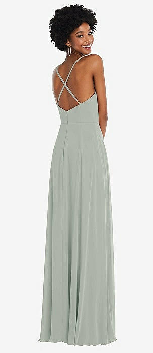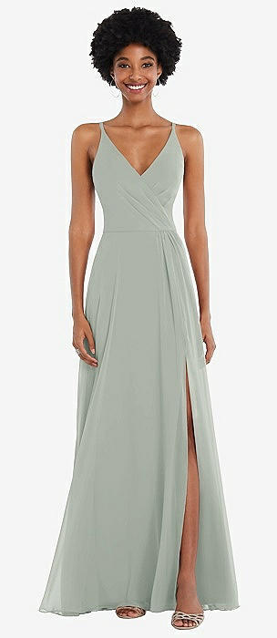 Faux Wrap Criss Cross Back Maxi Dress with Adjustable Straps