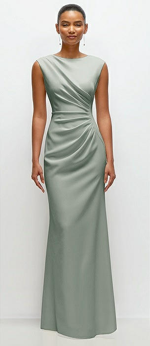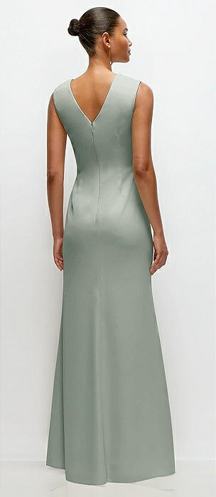 Sleeveless Cap Shoulder Crepe Maxi Dress with Trumpet Skirt in willow green