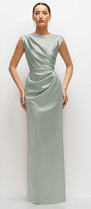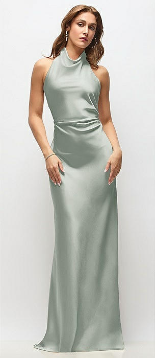 High Cowl Neck Open-Back Stretch Satin Bias Maxi Dress in willow green
