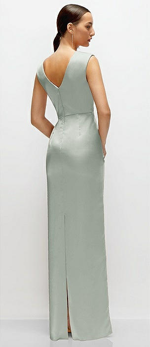 High Neck Sleeveless Cap Shoulder Satin Maxi Dress in willow green