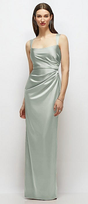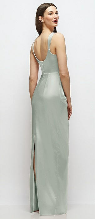 Scoop Neck Draped Column Stretch Satin Maxi Dress