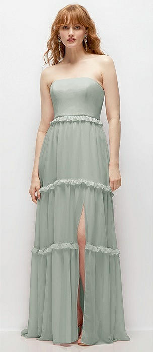 Strapless Chiffon Maxi Dress with Tiered Micro Ruffle Full Skirt in willow green