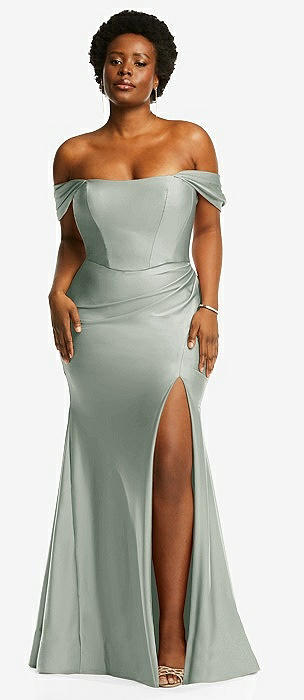 Off-the-Shoulder Corset Stretch Satin Mermaid Dress with Slight Train in willow green