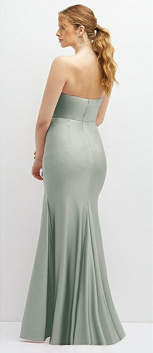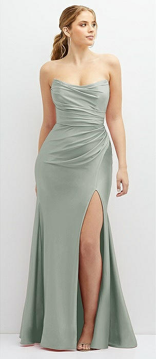 Strapless Basque-Neck Draped Stretch Satin Mermaid Dress with Horsehair Hem in willow green
