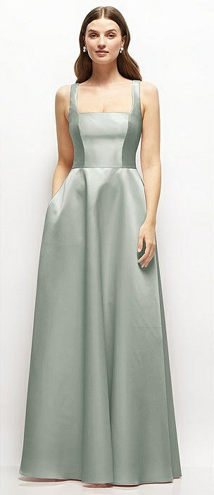 Square-Neck Satin Maxi Dress with Full Skirt
