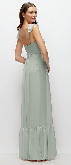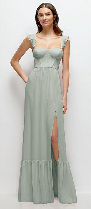 Ruffle Strap Chiffon Bustier Maxi Dress with Ruffle Hem A-Line Skirt in willow green