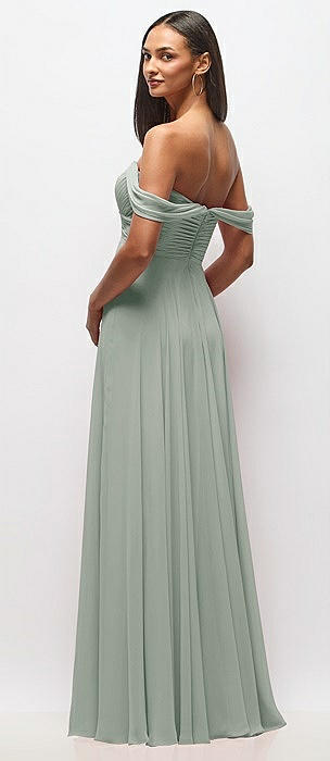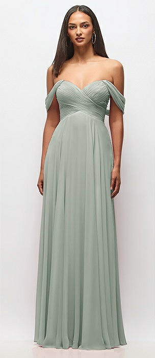 Off-the-Shoulder Draped Chiffon Maxi Dress in willow green