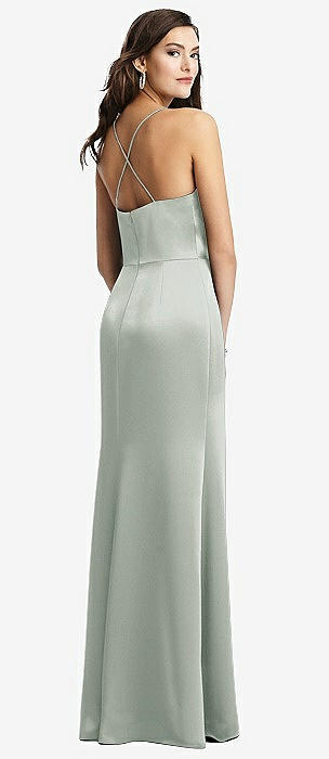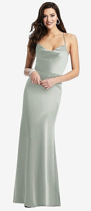 Cowl-Neck Criss Cross Back Slip Dress in willow green
