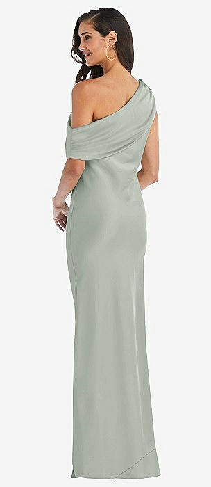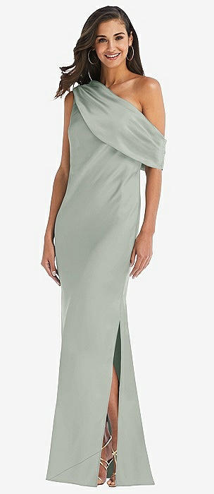 Draped One-Shoulder Convertible Maxi Slip Dress in willow green