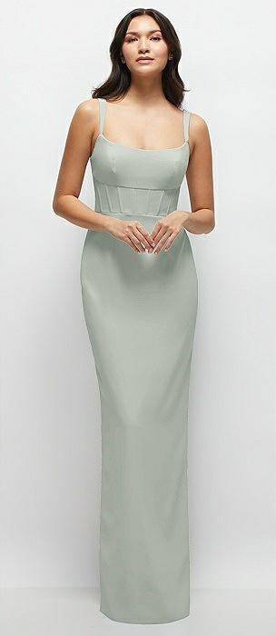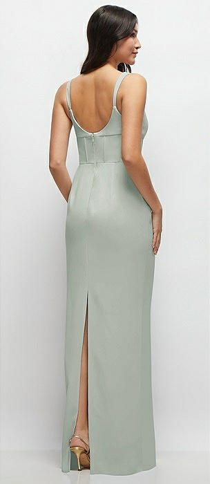 Corset Midriff Crepe Column Maxi Dress in willow green