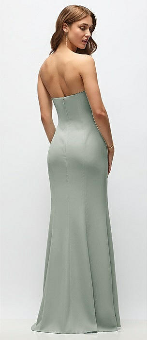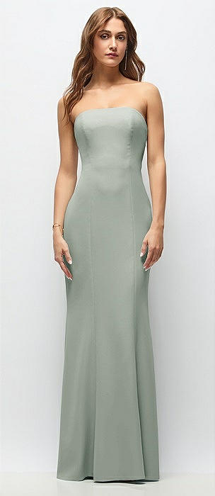 Strapless Fit and Flare Crepe Maxi Dress in willow green