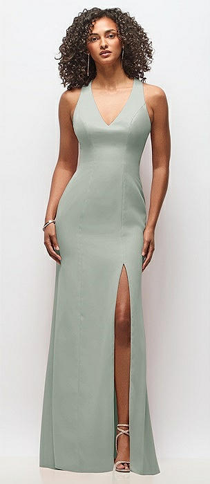 Tie-Back Cutout Trumpet Gown with Front Slit in willow green