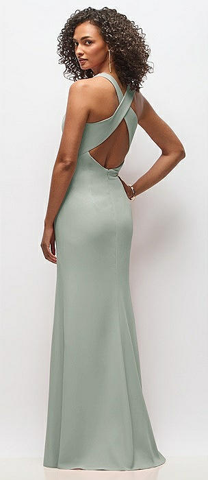 Tie Halter Open Back Trumpet Gown in willow green
